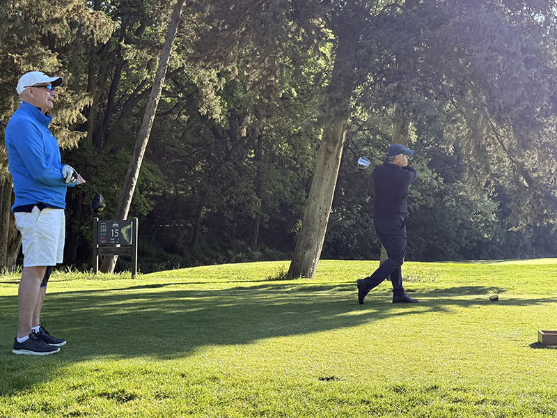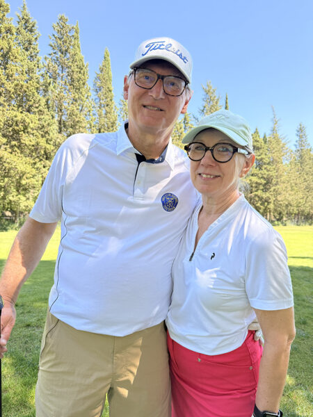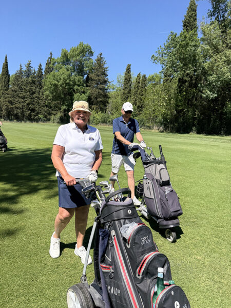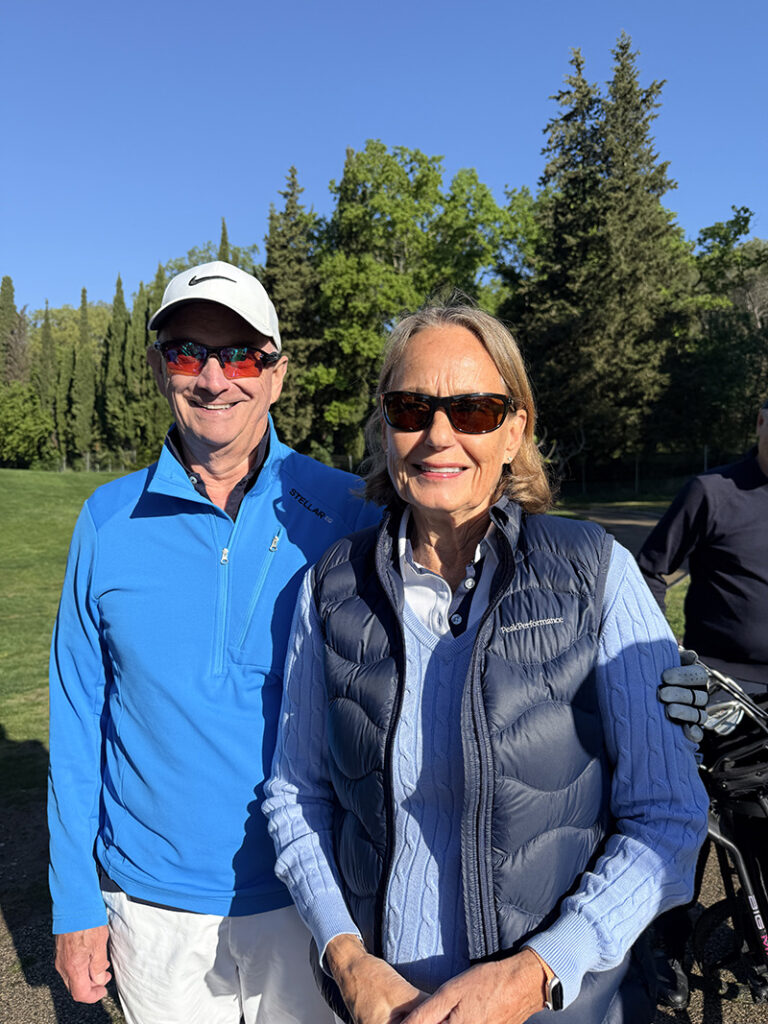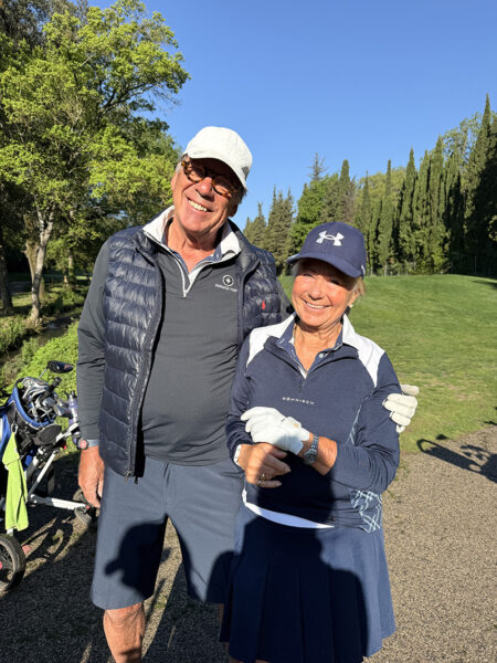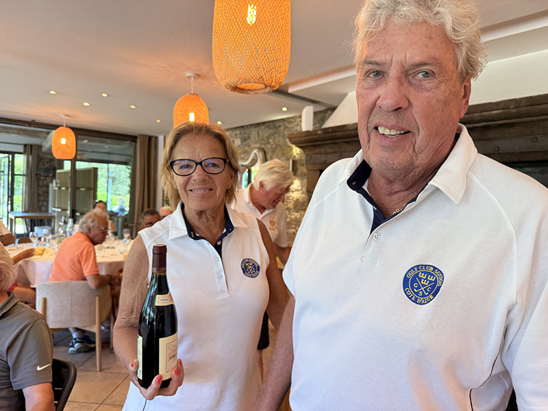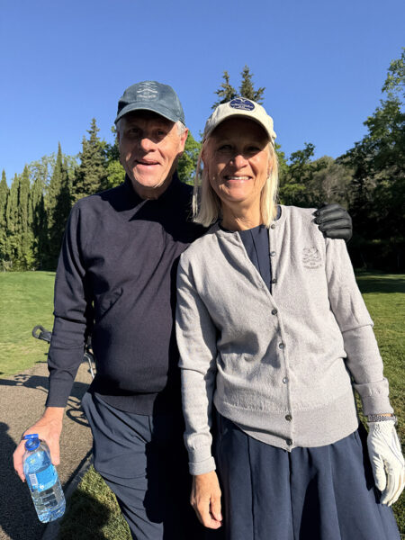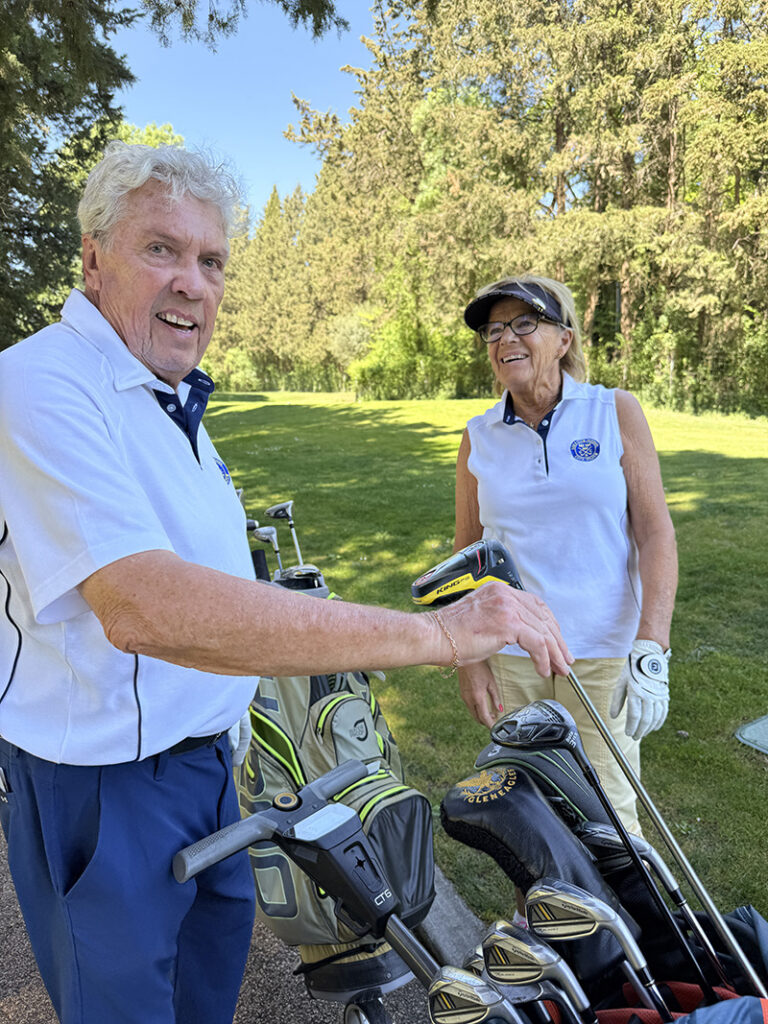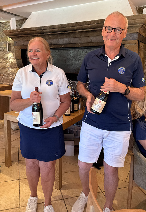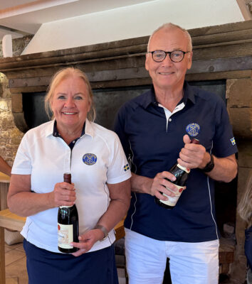 Med tanke på våra knäbyten (inte med varandra) och väldigt begränsat golfande det senaste året var det inte med några större förväntningar vi startade sidotävlingen i Äkta makar. Vi hade tur i lottningen och fick spela med Rosie och Sten Klasson så vi visste att vi i varje fall skulle få en trevlig boll. När vi efter tre spelade hål gjorde vi en birdie och fick 4 poäng kändes det som att det kanske var vår dag idag. Även om det inte blev ytterligare birdies flöt spelet på väldigt bra och vi kompletterade varandra, Lasse med långa slag på fairway och Annika med bra inspel och puttar. Vi trodde väl att man skulle behöva mer än 41 poäng för att vinna, men det räckte hela vägen.