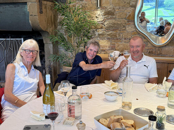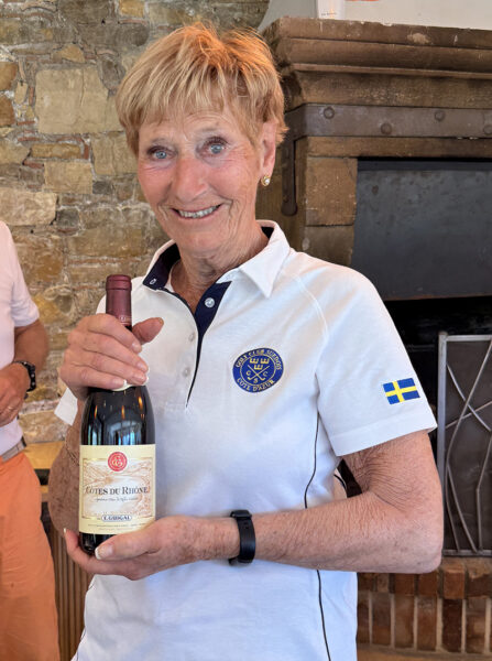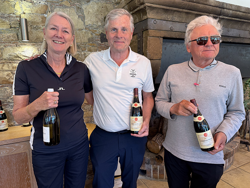 Best var det på hull 9, hvor chippen gikk rett i hullet og birdie. Da  gjestene på restauranten klapper er jo dagen reddet, og resultatet ble 41 poeng og ble alle vinnere i  lagkonkurransen med 90 poeng.